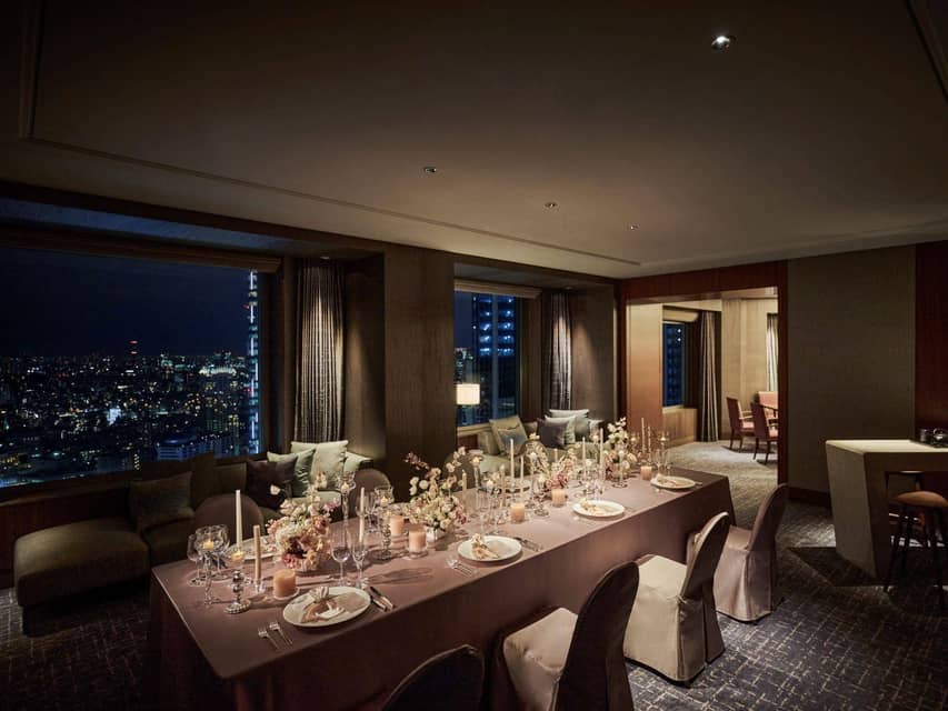 ホテルが誇る、地上140メートルからの眺望が魅力のスイートルーム。このスイートルームで6名~のお食事会が可能に。