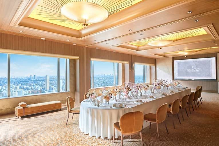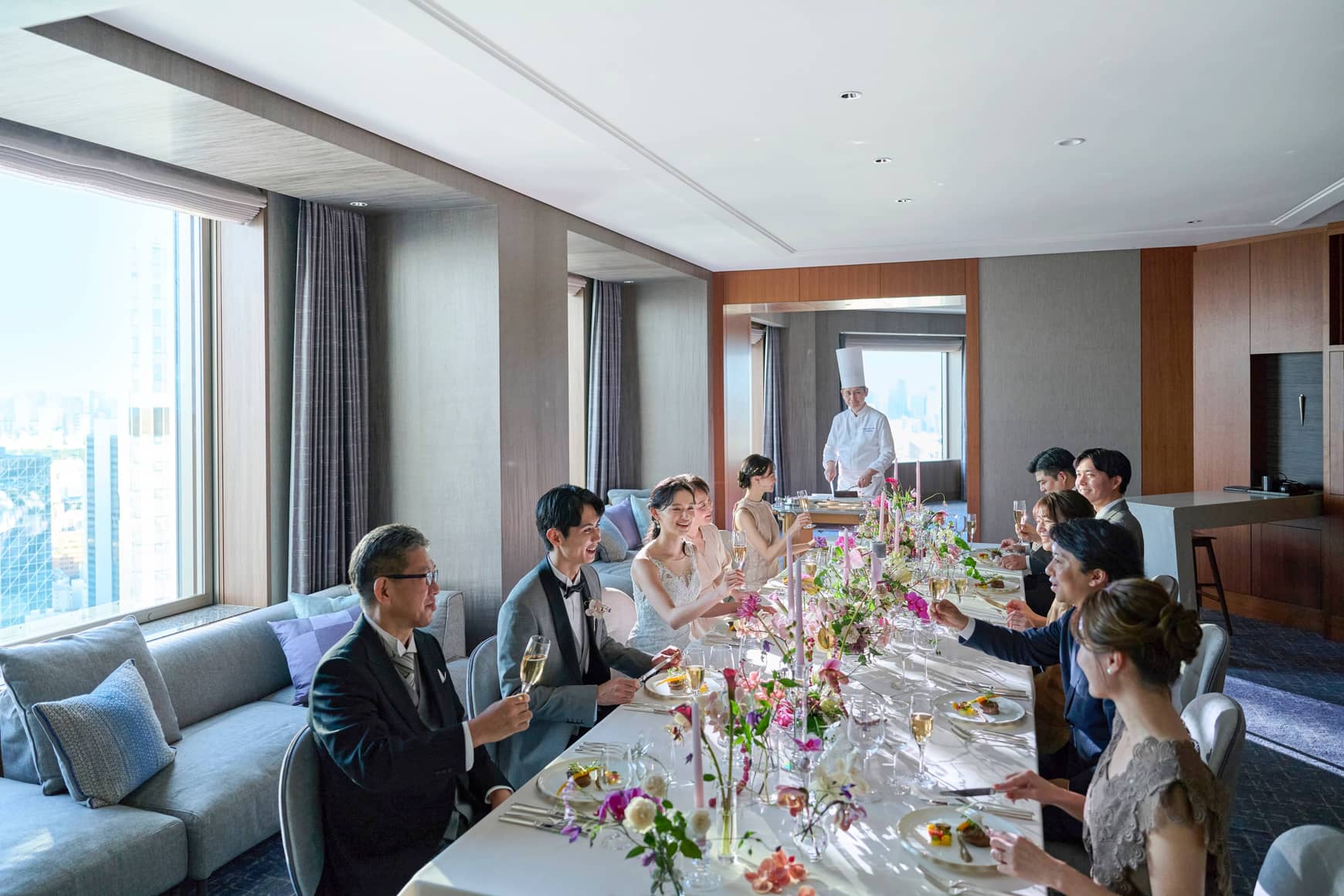 ホテルが誇る、地上140メートルからの眺望が魅力のスイートルーム。このスイートルームで6名~のお食事会が可能に。